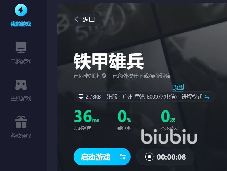 上述就是铁甲雄兵闪退怎么办的分享,在遇到端游类游戏闪退时选择好用的加速器就是个不错的办法,在加速器上biubiu就是一款非常好用的加速器软件。同时如果你还是biubiu的新用户那么将会享有很长的免费体验时长,充分体验加速过后的竞技模式画质质感和游戏流畅度。