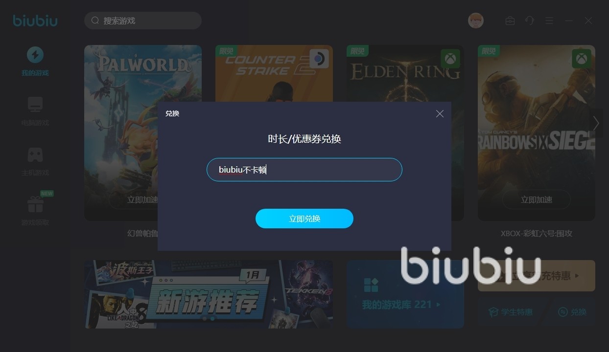 针对平台的使用,它也是有许多福利给到大家的,为的就是让用户能获得一个稳定且畅快的游戏体验,对于用户而言,大家只需去通过首页输入【biubiu不卡顿】就能额外的领取3天免费加速时长,这样一来自己也就不用担心会遇到网络卡顿或者延迟很高的问题,折算下来新用户就能有96h的加速时间了。