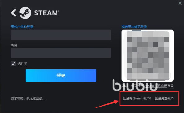 找到图中“没有steam账号”的文字,点击画着红框的选项即可进行下一步的操作。