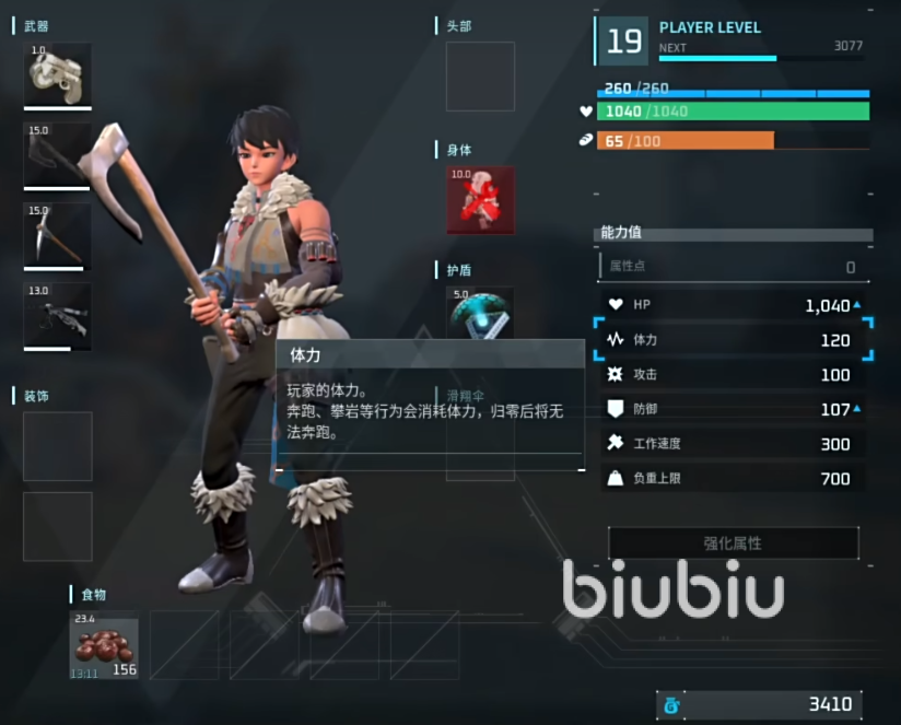 增加负重无疑就两个方法,一个是自己在升级后通过打开角色面板进行加点,每点都能为你带来50负重的增加,在前期开荒血量和负重这两个是首选加点向,毕竟工作和输出都是主要靠帕鲁,所以没必要点。如果你觉得装不下多少东西就超载了,多点些负重是不错的选择。