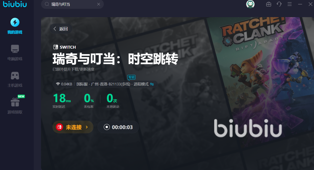 而加速器的使用方法也方便简洁,只需登录自己的账号,在首页搜索并且添加瑞奇与叮当时空跳转,在游戏的安装完整情况下,点击一键打开游戏即可享受系统分配的加速节点,即使是新手用户也很容易上手。那么相信大家已经心动了吧,现在biubiu官方还推出了福利活动:新人注册可享免费加速24小时,支持海量游戏在线体验加速,体验过才知道它的好。而新老用户使用兑换码【biubiu不卡顿】,可获得3天免费加速,记得输入的码是小写哦。心动不如行动,快点击上方链接,高速下载试试吧!