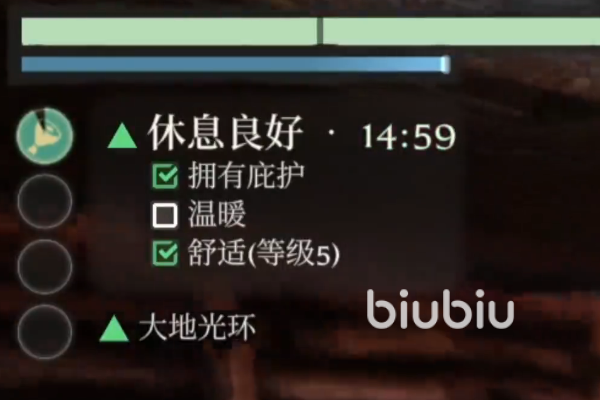 另外当角色处于有房顶、篝火或者舒服等级高的地方进行休息时,那么便可以出发休息良好的BUFF,这个状态可以提供角色的体力上限和体力恢复速度。另外需要注意的是,这个游戏设定的高处摔落伤害特别高,并且它的伤害是比例伤害,这也就意味着如果从特别高的地方摔下来,不管角色拥有多少血都会摔死。所以我们在前往下一个区域的信号塔的路上,一定注意不要随便从高处跳下去哦。