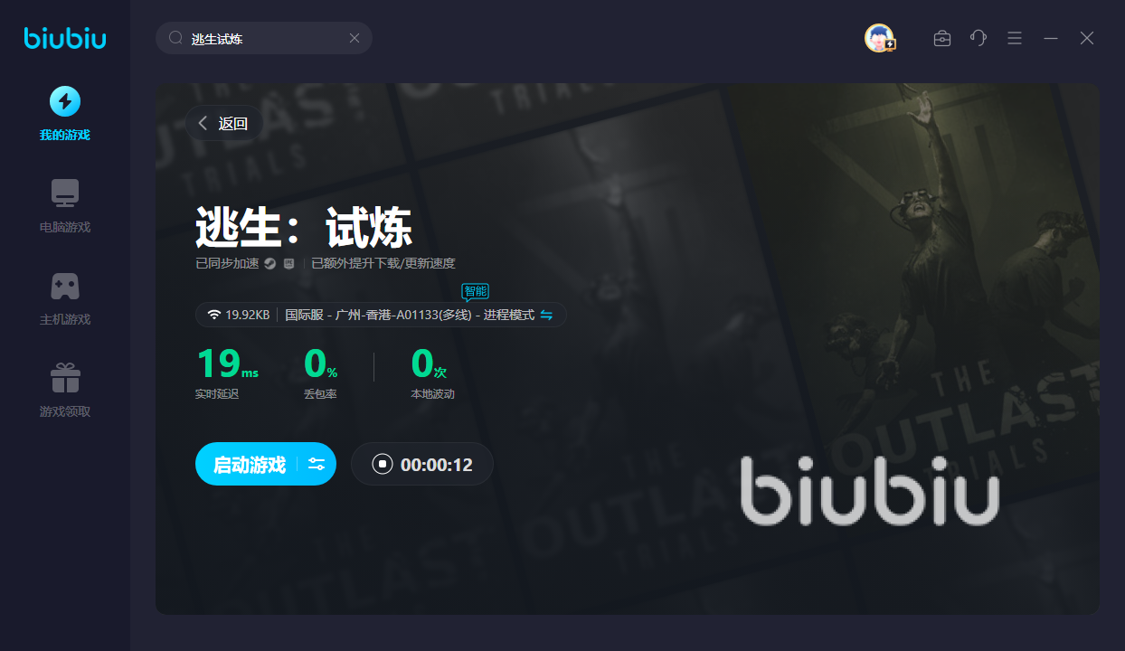 由于该游戏对网络的要求或高需要匹配不同的网友,才能一起在恐怖的环境下逃生。这时候开启biubiu加速器便可极大程度优化网络,这样就能助你匹配出网络质量同样好的队友,一般他们对他游戏的了解会更深一些,然后操作上也更好,这样就能大幅度提升你的游戏,胜率让你一次性就能通过你想要战胜的关卡,当然新用户注册后还可以领取24小时的免费加速,这样你就能发现有了biubiu之后,就能够提升游戏的胜率,然后要是延迟高的话也容易导致游戏失利。