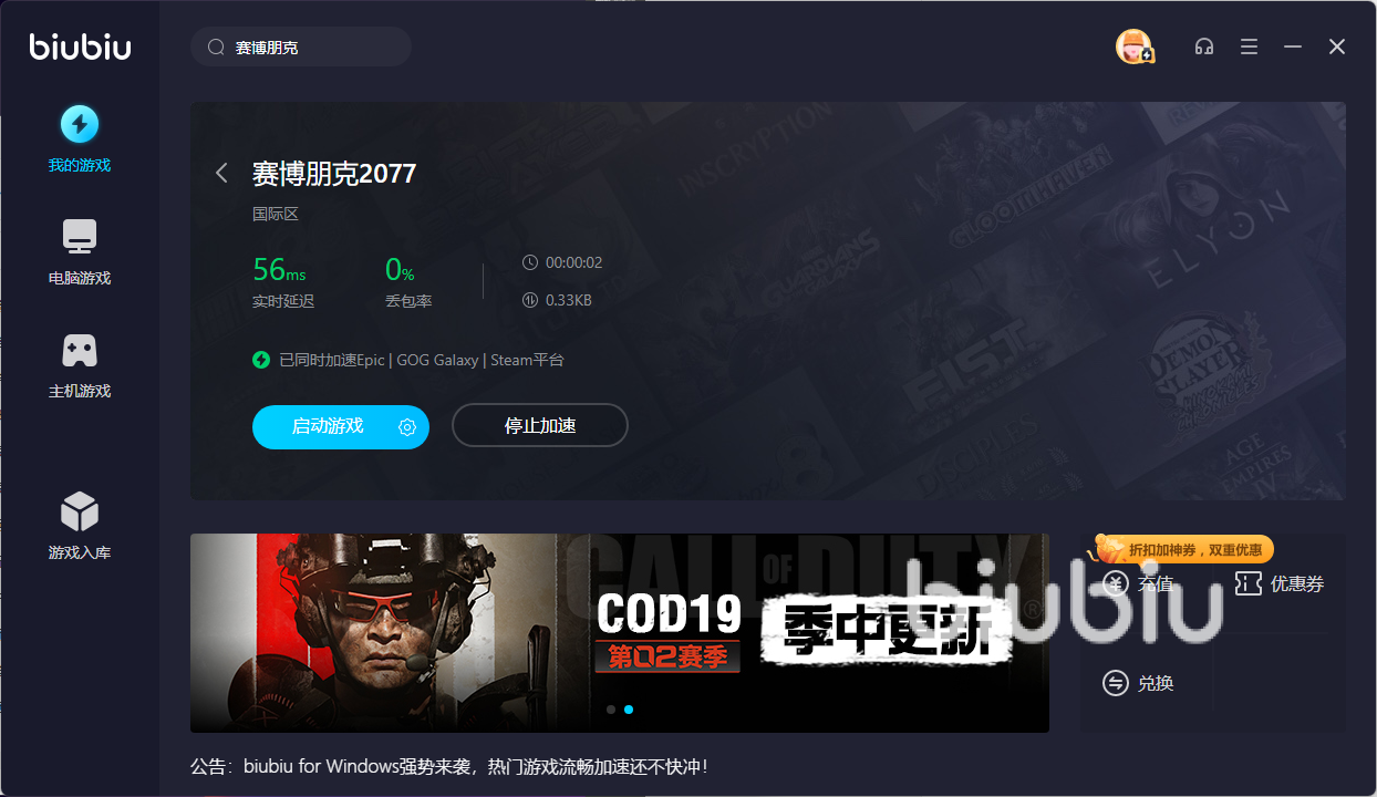 怎么样啊各位小伙伴们,针对这一次的赛博朋克2077掉帧怎么办,给大家介绍到这里是不是已经对biubiu的这款加速器有了初步的了解了呢,其实说了再多都不如自己亲身的体验下,毕竟前期是不需要充值的,尝试一下也没有任何的坏处,而且这里还有很多好玩的游戏,怎么说都不亏,动动手指快点拥有吧。