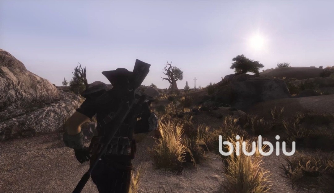 本作是以后启示录时代的内华达州为背景的,人们为了争夺那所剩无几的资源,开启了一系列的作战,世界因为核武器的攻击而沦为了一片地狱,玩家将化身为莫哈维来到这一世界,莫哈维原本是一名邮差,在阴差阳错之间大脑被人射中,但后来被机器人救起送到当地医院救治,玩家就是在这种状态下来开启自己的探险之旅的。