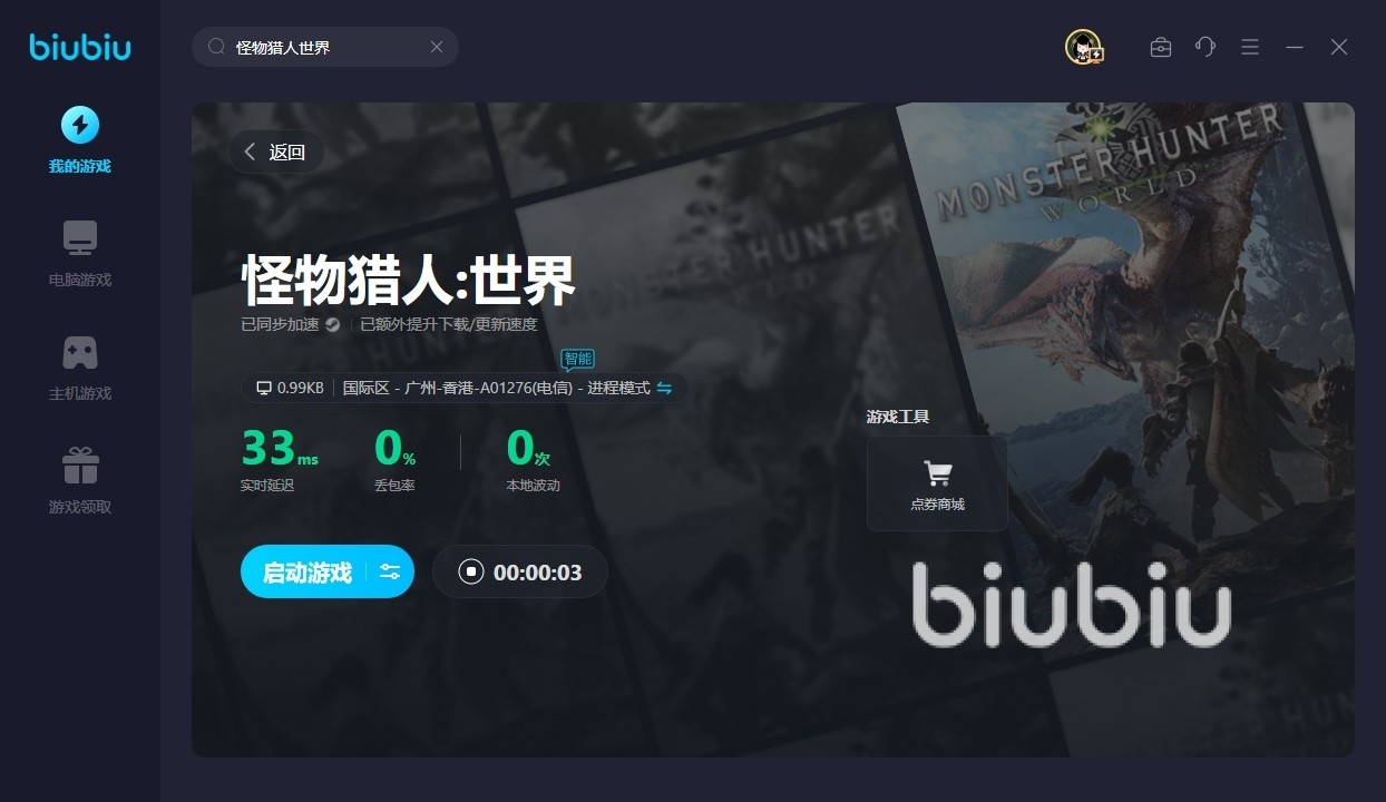 2024年01月31日 17:49 来源:突袭多饺子很多玩家对于这款rpg玩法的游戏很是喜欢,因为里面拥有丰富的剧情故事给到各位,让大家能沉浸体验它,下面小编就来和各位说下怪物猎人世界闪退要开加速器吗,如果说在实际的游戏体验中遇到了卡顿或者是丢包的状况,那么去使用加速工具来稳定网络就十分的关键了,像biubiu就是个不错的选择,作为阿里旗下的专线游戏加速工具,其效果上还是很突出的。