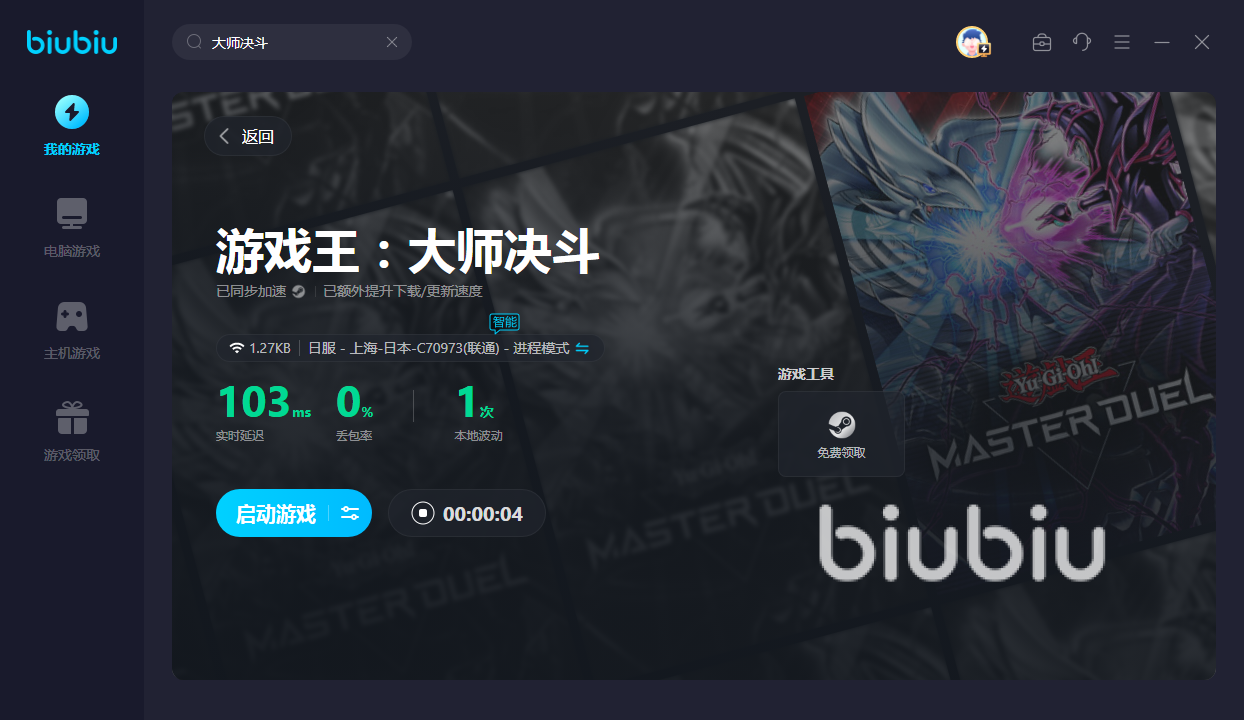 现在大家应该都清楚大师决斗用什么加速器好了吧,相比于市场上的其他游戏王系列游戏,这款大师决斗在各个方面都很有特点,如果玩家喜欢入手游戏王,那么大师决斗绝对是非常推荐的,现在有了biubiu之后,网络问题也得以解决,可以放心加入其中。