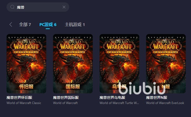 大家下载安装biubiu后,在应用顶部的搜索框中输入“魔兽世界”,就能轻松定位到这款游戏,如图所示亚服其实就是先选国际服,然后在区服的的时候选择港澳台的区服就可以了,软件会自动为大家匹配延迟最低的节点,不用担心网不好影响你的发挥。