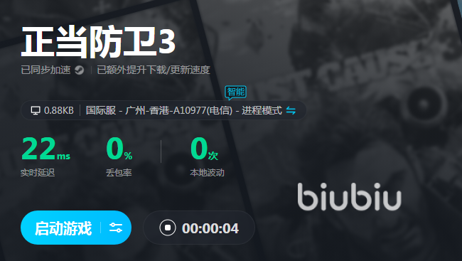看完介绍,还有小伙伴不知道正当防卫3闪退怎么办吗?答案显而易见,只要安装biubiu就不会再有这些困扰。今天小编还给大家争取到了限时福利,到软件去使用【biubiu不卡顿】兑换3天免费加速时长,不用花钱就能免费畅玩喜欢的游戏,加速次数不限制,只要大家玩个痛快。