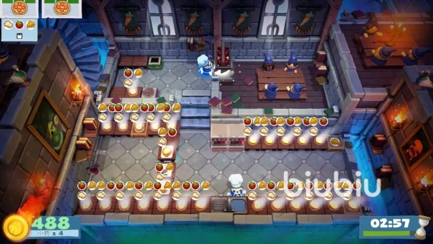 根据小编的了解,该游戏的玩法并不是非常的难,同时趣味性十足,玩家能够进行四人的联机组队玩耍,当然了随着人数的增加,其关卡的难度也是会随之增加的哦,大家在厨房之中可能会出现手忙脚乱的现象,毕竟菜品的种类实在是太多了,玩家只有分工明确才能有条理的烹饪出各类不同的美食,而组队考验的也是玩家之前彼此的默契。