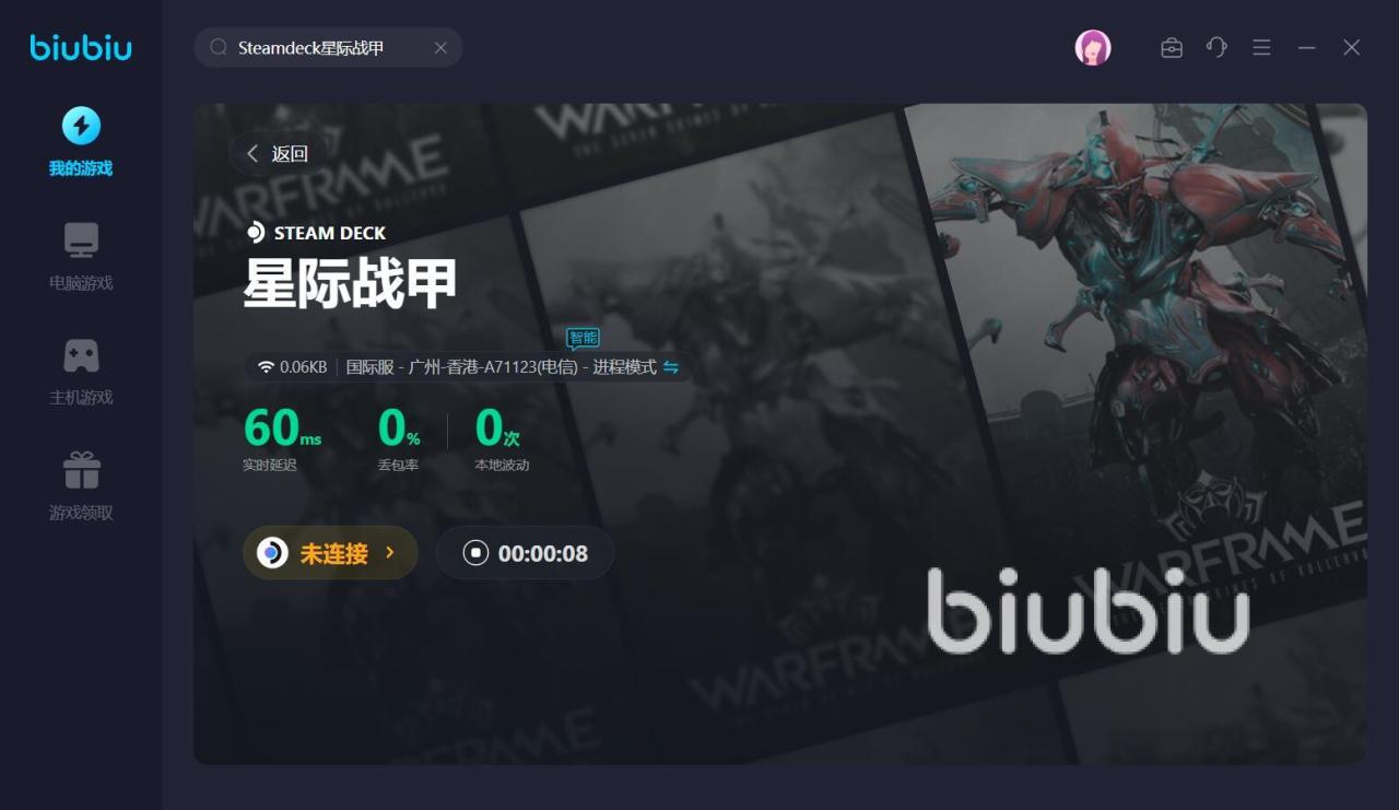 以上就是warframe推荐加速器有什么,逼真的3D建模,极具想象力的场景设计,营造出了一个逼真的科幻世界,大家可以驾驶自制的机甲去参与高强度的对抗,如果不想在对阵时突然掉线,那么可以使用biubiu加速器去改善网络环境。
