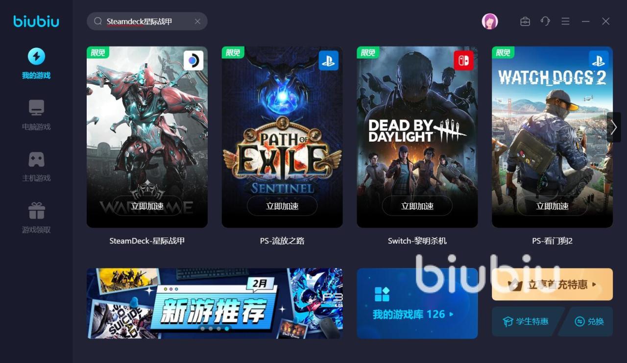 平时上线做任务的话,可以利用通勤或者休息的闲暇时间在掌机上完成,但这种情况下,网络都不是太稳定,这时可以使用biubiu加速器去进行优化。这个软件的操作难度也不高,只需找到对应的加速入口并点击图标上的立即加速即可。