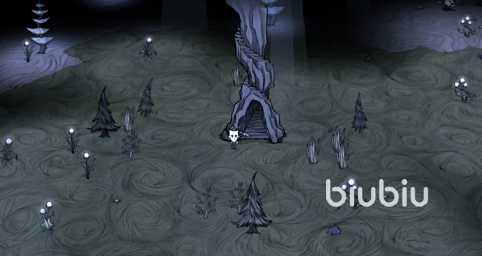 在这个世界当中,光源是很重要的东西,在设定里面有奇怪的石块,可以通过它进入地下世界的,不过在地底使用固定的火堆没有用处,而火把明显的燃烧时间也不够,那就可以采集荧光果做成提灯,但是这个植物生长在地下,在此之前还是要获得有用的光源。