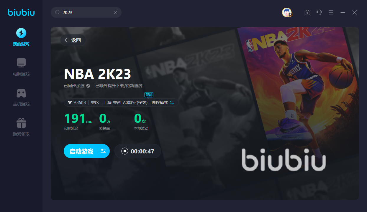 如果游戏网络延迟高的话,也会导致整个页面崩溃,所以有了biubiu加速器之后,就能让你全身心的投入这场篮球比赛里面,不用担心闪退的情况出现。因为一闪退的话会直接将你判负,甚至严重的话还有可能封号,所以为了保护你的游戏帐号。使用biubiu加速器才能更加没有后顾之忧。有个朋友想先体验一下这种加速感或者2K23这款游戏,新用户注册后,可领取24小时的免费加速,如果你想要继续沉浸在篮球比赛里面的话,新老用户输入【biubiu不卡顿】,便可继续享受三天免费加速。在这种畅快的加速体验下,你就能够感受到一场酣畅淋漓的篮球竞技过程,甚至不用担心被对手嘲讽。