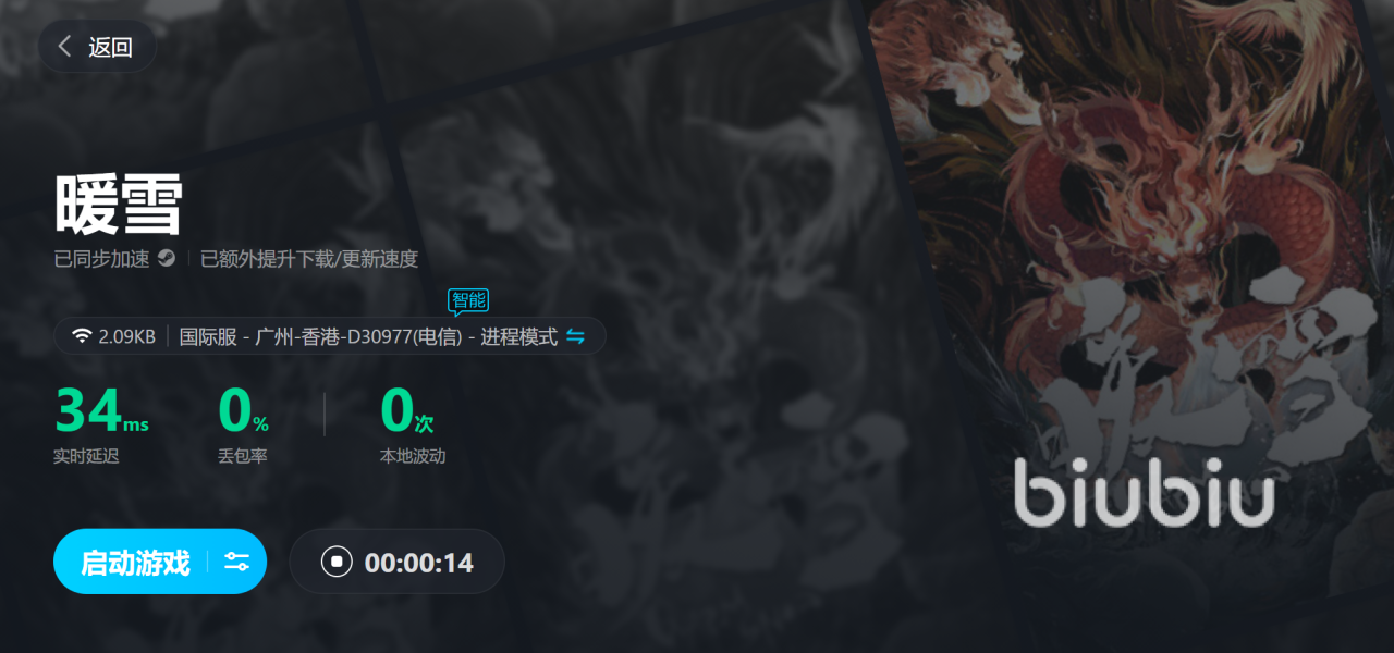 2024年02月06日 15:38 来源:灵动信胡地本作是围绕着“暖雪”这一核心为玩家们缔造了一个充满着暗黑氛围的架空奇幻武侠世界,为了让各位能够获得流程的游戏体验,在暖雪闪退怎么办中,小编会来介绍一下暖雪出现闪退问题时的解决方法,小伙伴们可以尝试一下,其实这个方法是很简单的,大家只要下载biubiu加速器来为游戏进行加速就能解决,当然,欲知详情,还请跟随小编来看一看叭!