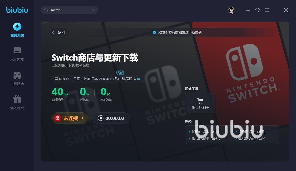 2024年02月06日 15:38 来源:对剑不椰蛋树作为任天堂开放的混合游戏机,它除了非常的便捷外,里面也是汇聚了多种不同的游戏作品,让玩家能够去链接电视玩耍,其特点也是很鲜明,今天小编要为大家介绍的是加速器switch怎么选,毕竟要是网络遇到了卡顿,或者是延迟很高的情况,那么体验的时候也会不畅快,因此建议各位可去考虑使用biubiu来针对它进行连接,各位要是有想法的话,不如就来看看这款加速工具的效果究竟如何吧。