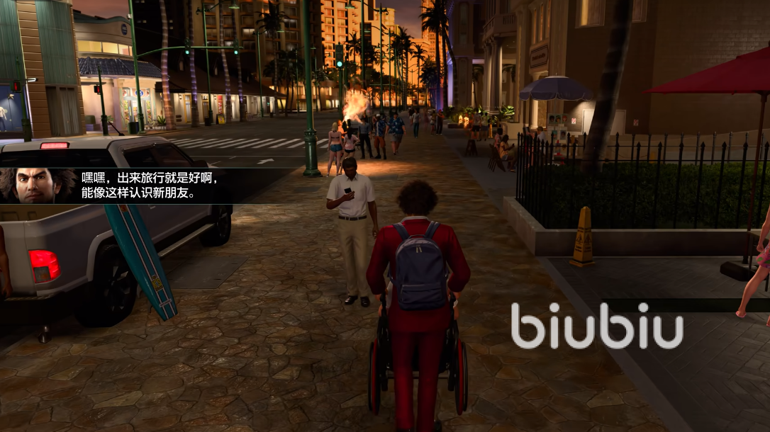 离开前春日前往荒川之父的墓地进行扫墓,然后便出发了,不过在走之前玩家要选择是否带上自己的宠物南希,一只龙虾,这里推荐选择带上。在登上飞机经过长途跋涉后,春日来到了充满风情的夏威夷,他也因此成为了一名异乡人。在下机之前我们遇到了一名坐轮椅的乘客下不来,春日直接上前帮忙。
