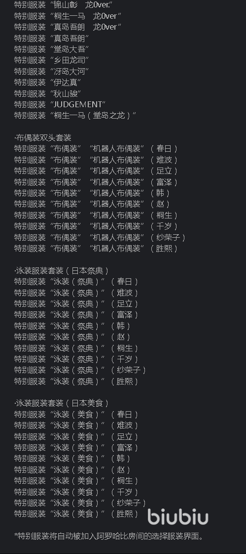 有关人中之龙8服装组合包使用方法介绍就为大家聊这么多了,这个组合包会包含在究极版中,当然你也可以通过单独购买获得。若你想让自己和同伴拥有更多造型,不妨试着入手,相信有了更多的外观,你对这趟冒险也会更有热情。