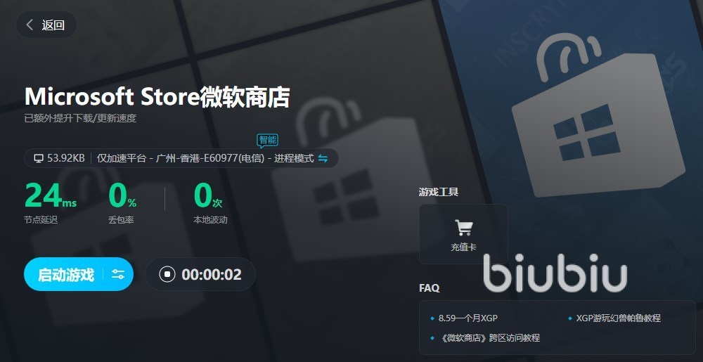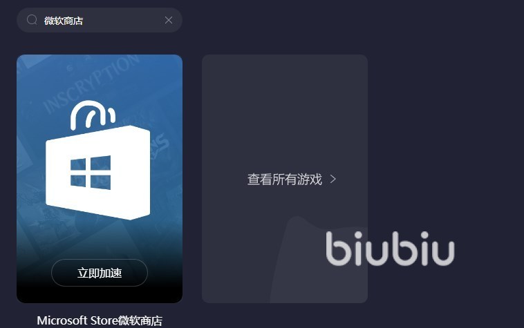 但如果直连的话更新会非常慢,时不时还会掉线,在玩一些需要联网在线的游戏时更是如此,因此就需要加速器提速,biubiu加速器就能很好的胜任这份工作,也软件首页搜索“微软商店”就可以找到该平台,将其加入你的游戏库即可。