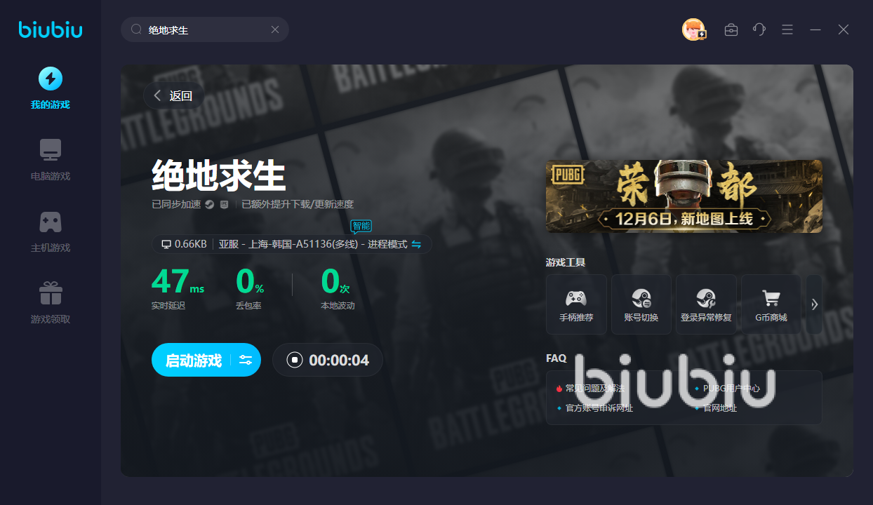 吃鸡这款游戏在全球那么多游戏当中脱颖而出,一瞬间将此类游戏抬上了巅峰,从最当初的三张地图再到现在越来越多新元素的内容添加,虽然说它目前的热度可能不如2018年的时候高,但每天的平均在线人数还是能达到几百万,地图场景刻画的细腻,越来越多需要控制的枪械加入,许多地图上引进的道具让玩法不断地在更新改革,要是想让自己的技术与时俱进的话,可以和很多职业选手一样选择biubiu加速器。