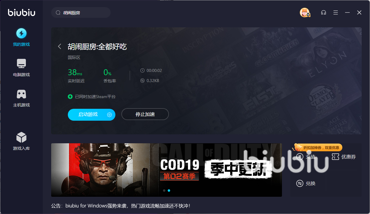 提高游戏的下载速度同时也为玩家们准备了很多的游戏,专业的硬件设备帮助大家实现无断点的下载,基本加载速度会比之前提升五倍。首次使用的用户是可以享有24小时的免费加速时长体验的,然后去兑换界面输入【biubiu不卡顿】还能再领取到72小时的加速时间,足足四天的时间不管怎么样都够大家去深入的了解这款加速器了。