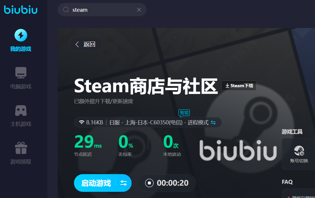 Steam经过多次的更新换代之后,现在的steam拥有更加整洁的页面,现在大家在使用登录过程中会发现Steam的整体页面看起来更加整洁,操作时也更加流畅。而且玩家也可以在使用中调出更多的功能。同时steam不仅是发行游戏资源的平台,玩家也可以使用steam的游戏社区功能,与其它的玩家一起讨论游戏,甚至在steam里玩家还可以参与到游戏的开发中,提出游戏开发的建议。推荐利用biubiu加速器来加速Steam的网络。