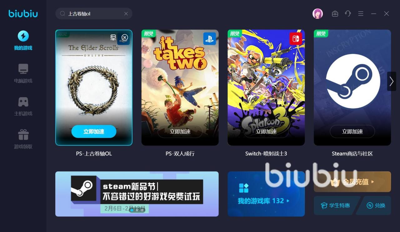 在电脑上玩上古卷轴ol可能会遇上很多未知的问题,主机版本玩起来就省事儿多了,不用费时费力的折腾,也能有不错的体验。针对主机端游戏,平台也推出了专门的加速服务,就以这个游戏为例,大家可以在应用中搜索到游戏专属的加速入口,接着点击立即加速就能启动这个功能,整体操作起来很轻松。