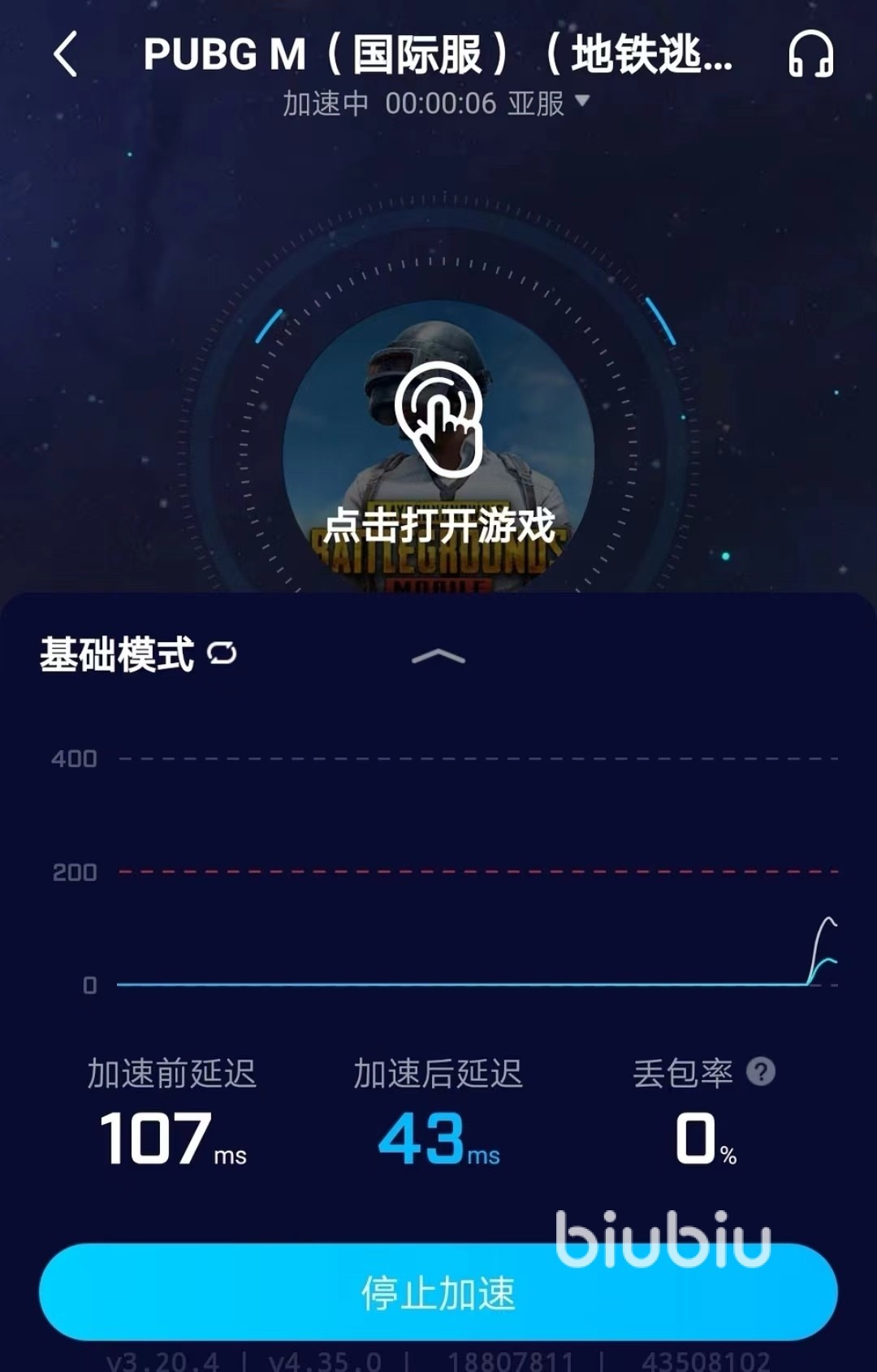 biubiu加速器有2个模式,智能模式和基础模式,智能模式下的加速效果更好,因为APP会自动识别当前网络质量,从WiFi和流量自动切换。加速器支持用户在国服以及外服进行切换,如果是外服大家手游需要提前下载好哦,接着点击游戏右侧的加速选项就行了,只需要几秒钟的时间启动,随开随用,停止加速也是非常快速的,加速开启后大家可以点击界面中心的“点击打开游戏”,直接跳转至游戏APP,方便用户更快打开游戏。