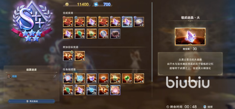 主线的序幕和第一章结束后玩家会来到一个城镇,此时大部分的游戏功能就解锁了,你可以在任务委托柜台接取任意类型的委托,通过与人联机或者和AI组队开启战斗,每场战斗结束后都会给予锻武碎片以及结晶。
