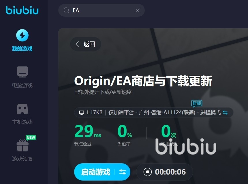 以上就是ea游戏加速器怎么选的内容分享。如果玩家想要玩的游戏刚好是需要借助客户端启动的游戏,那就选择biubiu加速器。这个加速器能够帮你在网络上与游戏客户端之间建立稳定的加速连接,这样玩家在玩游戏的时候就不用担心网络波动会引起游戏卡顿了。