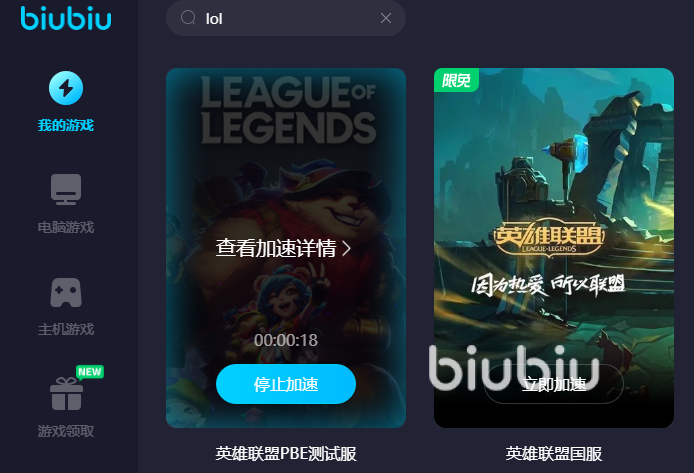 lol美测服加速器推荐带给大家,各位想要玩的开心,不要忘记用biubiu加速器哦。还有个温馨小提醒, 对于测试服跟正式服都玩的小伙伴来说,要记清楚两者的差异,不然一个恍惚就容易出现失误,明明技能改版效果还没有实装,在正式服就换了打法,那肯定是不成功的。