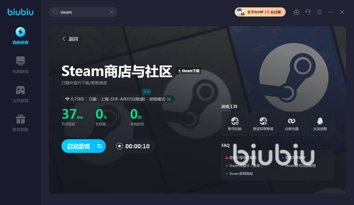 在steam平台中,除了常规下载各种大型游戏以及后续进行更新之外,社区绝对是众多玩家的聚集地。玩家可以在玩游戏的同时访问很多社区,这是由用户和玩家所组建的游戏中心,能在这里进行很多相关评价,其中很多都是非常经典且客观的,可以帮助大家快速搞清楚一款游戏是否值得入手。同时在这里还会有很多热门的话题等待大家查看和参与讨论,集合了很多人的智慧,对于玩家来说可以解开心中的疑惑,同时能够查看到当前最新的热门信息资讯等内容。为了解决登陆社区时失败或者是查看不流畅等问题,biubiu加速器的优化功能是很关键的。