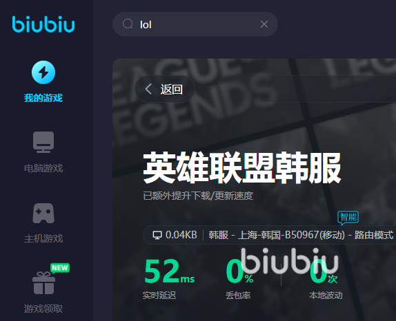 只要是对段位有一定执着的小伙伴,一定是对自身操作是有要求的,因为这种问题让自己被爆打,肯定是不服气的。所以用一款合适的加速器就很重要,最好的选择当然是biubiu了,正巧最近还有活动开放,新人可以享受24小时的免费加速效果,另外用了兑换码【biubiu不卡顿】更是可以得到额外的72小时加速时间。