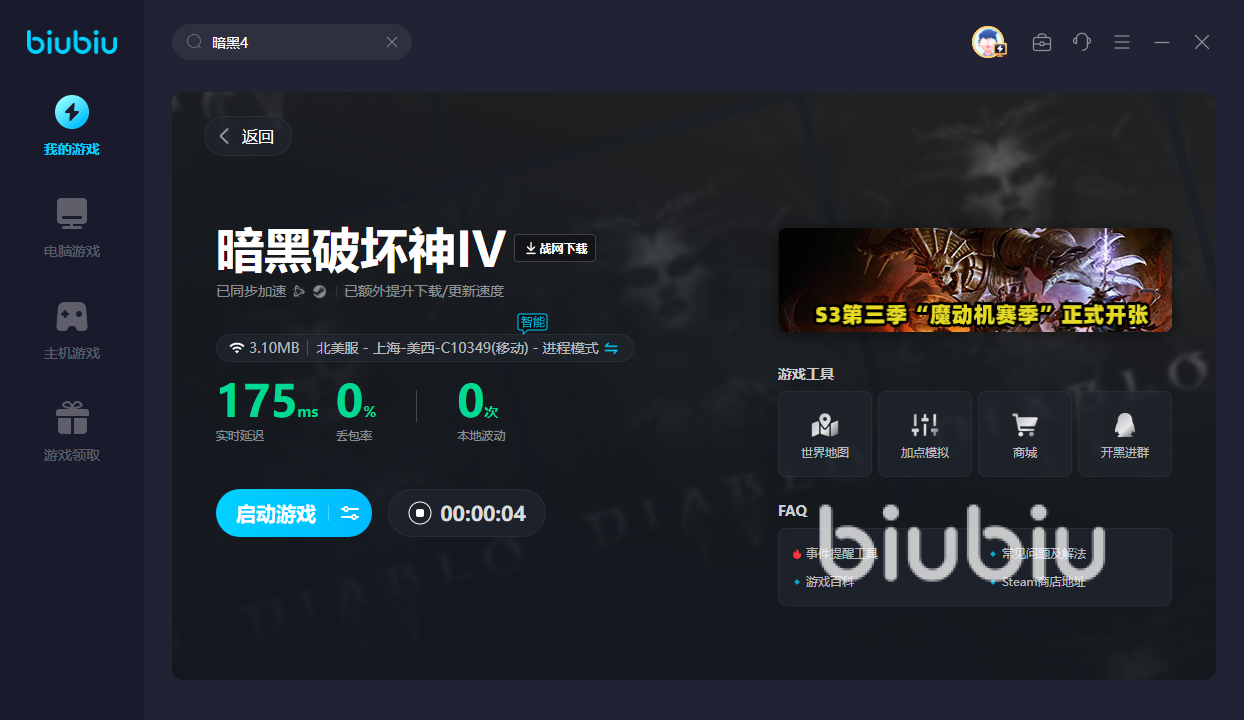 特别是新用户可获得24H的免费加速时长,这样对于第一次玩暗黑4的朋友来说,就可先试玩一下这款游戏。想要继续深入的话,新老用户亦可键入【biubiu不卡顿】,便可继续获得三天免费加速。游戏内的网络质量很重要,因为当你刷副本的时候,为了跟队友们打好配合,就需要用上biubiu。即可避免网络卡顿,延迟更低的情况下才能稳住,然后不断地做好自己的工作,才能玩得更开心!