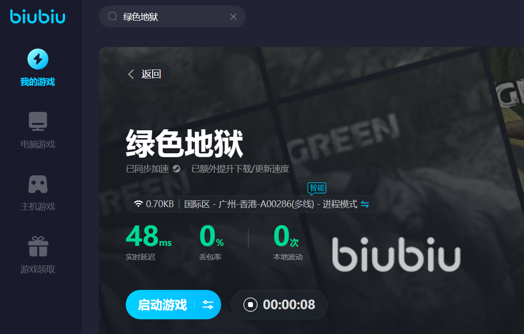 biubiu为顺应时代发展,不仅有端游网络加速服务,现在对手游上的游戏也提供了网络加速服务,大家只需在自己的设备上下载相应的加速器就可以。目前对于绿色地狱这款游戏的加速服务也是非常专业的,大家在biubiu上搜索之后会发现,目前对绿色地狱这款游戏只有一个版本,大家直接点击进入就可以对游戏网络进行加速。