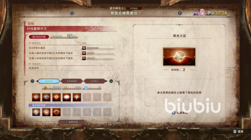 其实玩家在委托任务栏中,每次第一次完成任务都能获得“荣光之证”,这是突破和打造武器的材料之一。本作的委托战斗非常多,所以你不用担心这些材料会不够用,而且本身对于该物品的需求也没那么大。
