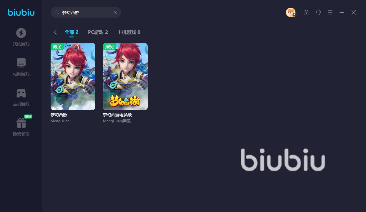 搜索【梦幻西游】之后就能看到两个客户端均为限免加速,除了这项活动之外,朋友们在去体验外服游戏时也是有活动可参与的,就比如新用户首次注册登录能领取24小时免费加速,如果说你之前有用过biubiu加速器但没体验过这项活动的话也没关系,因为现在不论你是新老用户也能凭借兑换码【biubiu不卡顿】来领取72小时免费加速,不过小编建议是直接复制去领取,因为兑换码是必须全部小写才能领取成功的。
