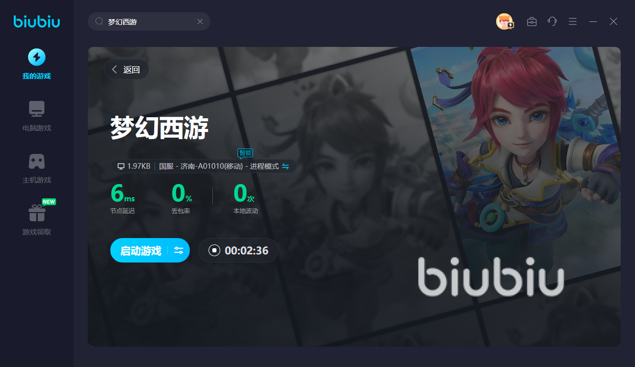 梦幻西游吸引人的就是一种成长感受,从最当初的0级慢慢提升等级,在江湖途中还会遇见许多“江湖朋友”,还能打造极品装备跟各种极品的宠物,再加上独特开放的交易市场,让许多梦幻西游的玩家粘性变得更强,虽然说梦幻西游的内存占比不算很高,可每次版本更新后都会出现很多闪退的问题,作为国服游戏发生闪退解决方法也是很简单的,可以到biubiu加速器里开个加速器,因为梦幻西游目前在biubiu里面是可限免加速的。