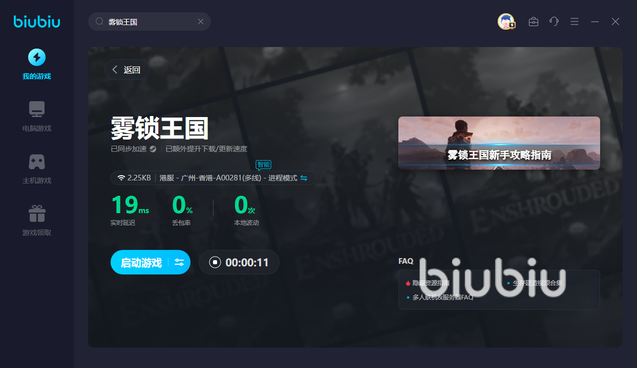 在玩雾锁王国时,若是卡住的话,就很容易被怪物或者敌人消灭。这时运行biubiu的话,便可防止网络卡顿,令你流畅地释放技能,轻松打出组合招,一波带走对手。有的boss比较难打,若是跟队友配合不好的话,就容易团灭。Biubiu的提速效果很好,用了就能及时接收队友的信息,然后打出惊才绝艳的操作,配合队友拿下胜利果实!