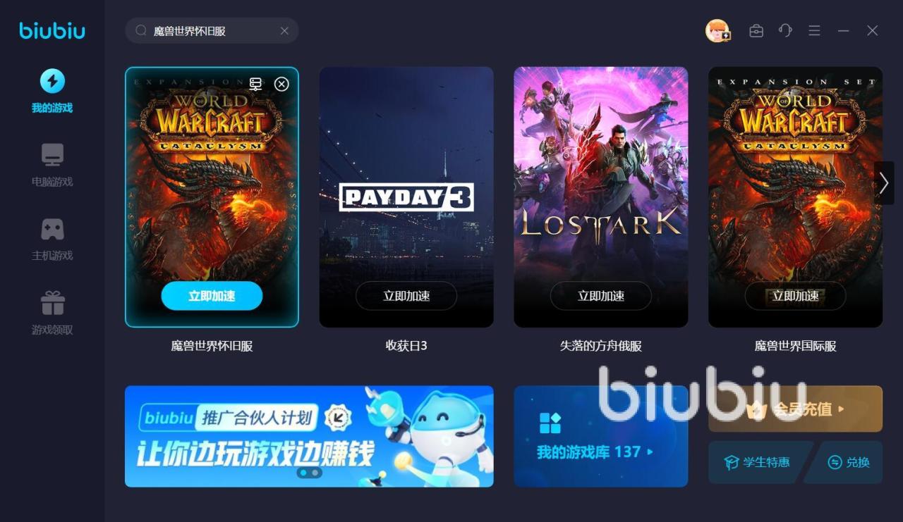 以上就是魔兽怀旧服加速用哪个应用靠谱,这个版本内的场景画面都充满了年代感,要是你想回味一下经典元素的话,而且不想在游玩期间碰上卡顿的话,biubiu加速器或许是一个不错的选择,有了它的加持,玩起来就更丝滑了。