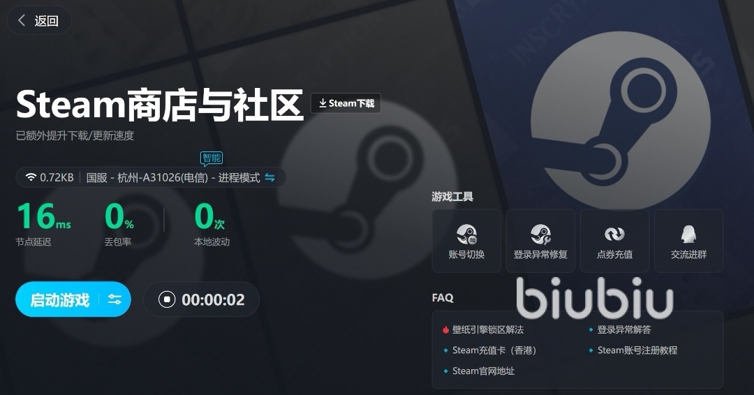 2024年02月23日 15:06 来源:主宰旦饺子Steam是一款人气超高的游戏商店,为玩家提供了广泛的游戏选择,还有有趣的社区功能,通过Steam商店加速器选择哪个好,小编为各位带来了biubiu加速器,毕竟想要Steam这样一个内容多样的软件可以流畅运行,对于网络环境的要求是比较高的,而biubiu则刚好具备着这一系列的功能,能够极大地优化Steam的运行环境。