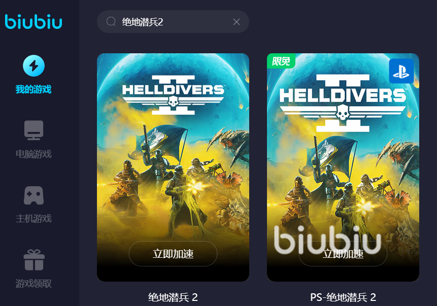 绝地潜兵2加速器下载安装的相关内容小编介绍到这里就结束了,体验其他平台和类型的游戏使用biubiu加速器也能有效减少网络差带来的各种影响,不会让大家因为网络差而结束游戏或者掉分,小编认为你们还是比较有必要去下载这样的加速器的。