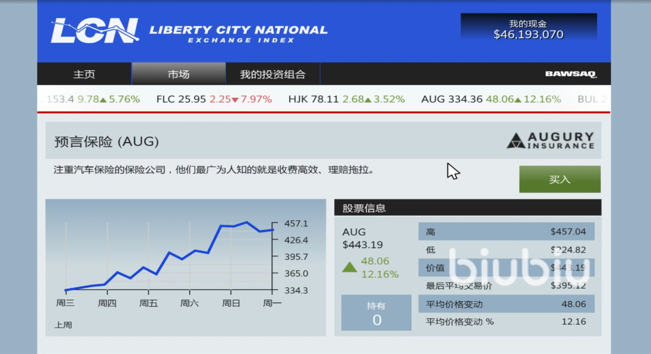 这款游戏中有非常多支股票可以选择,小编建议大家尽量不要选择麦克来买卖股票,因为使用他的话有概率会遇到假股票,最后亏得老本都赔进去。其次动物方舟股票这支股票也最好不要买,涨幅率不是很高,如果大家已经买了的话在涨幅的时候直接卖掉就好了。如果遇到跌了的话也没有关系直接卖掉,后面会给大家分享用股票赚钱的方法,直接就能赚回来。