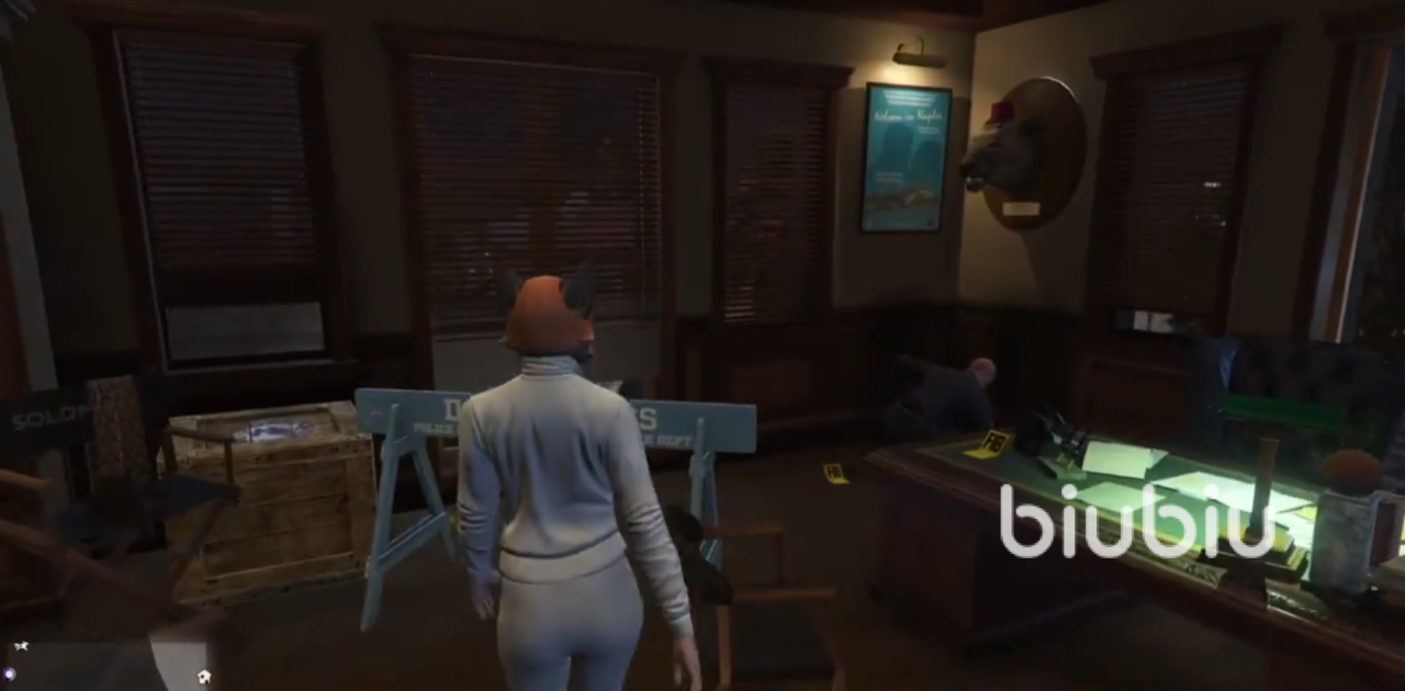 如果有机库的话进入不会被通缉,如果没有的话推开门要做好战斗准备,因为里面有很多荷枪实弹的阿sir,而道具就在一进门正前方靠墙的桌子上,进门就是四星哦!