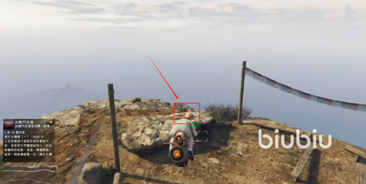 这个最好有MK2,因为需要穿行过村子,如果没有的话最好多备一些防弹衣、零食,准备好重武器,因为村里有很多携带武器的村民,一靠近就会自动攻击,从大门一直走到悬崖就能看到道具了。