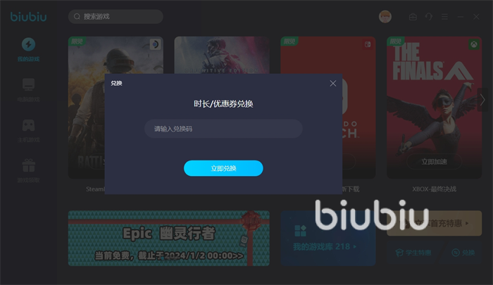 此外新用户目前可是有着24小时免费加速体验,同时不论平台新亦或者老用户,只要在兑换界面输入【biubiu不卡顿】就能领取到额外3天的加速时长,这点对于小伙伴们而言还是很重要的,能确保自己获得超长的试用机会。