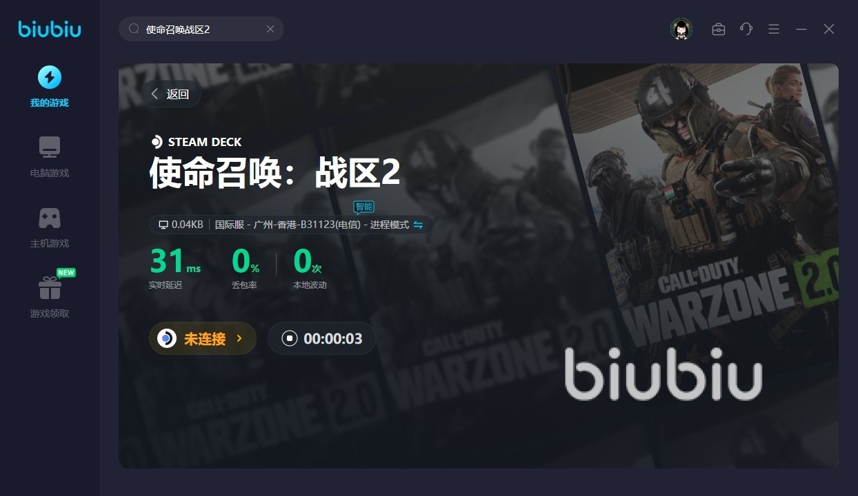 2024年02月26日 14:47 来源:神器本瓦斯弹作为战术竞技的逃杀游戏之一,它的人气一度都非常的高,玩家都希望能去解锁强力的武器来进入其中战斗,不过在和其他玩家竞争的时候大家应该也发现了,经常会遇到延迟,对于使命召唤战区2闪退怎么办这个问题目前也有很多的朋友并不是很清楚,其实想要去解决这个难题的话,建议是去使用biubiu,各位若是对此有想法不如就来看看吧。