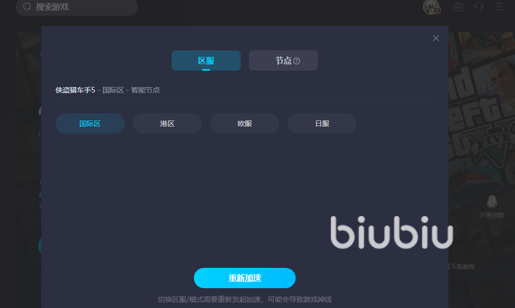 使用方式也不难,只要登录biubiuPC客户端,找到自己想要的体验方式,不管是PC端还是主机端都可以,然后找到自己账号所在的区服,剩下来的就交给biubiu去处理吧,它会自动选择最合适的线路给玩家使用。