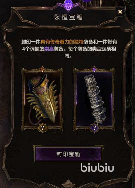 在找到永恒宝箱后玩家需要把制作的装备放进去,这里要求如首图所示放好后按流程操作,紧接着来到废墟纪元,在这里我们可以打开被封印的宝箱,打开后就可以获取制作完成的装备了。在制作装备的时候大家要保证网络正常,否则很容易失败,这里推荐大家安装biubiu加速器,独有的专线加速可以保持网络稳定不掉线。现在注册成为新会员还能免费享用24小时的会员加速,同时输入【biubiu不掉线】可以领取3天的免费会员加速,该福利不分新老用户都可以参与。