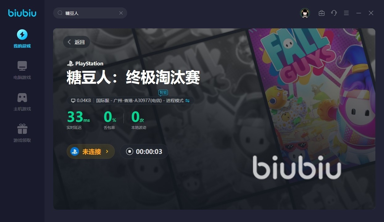 考虑到PS5里的糖豆人暂时只有国际服可去选择,而为了能够顺利的登录网关,大家肯定是需打开biubiu的,它能为大家快速的减少延迟,不用在担心会遇到拥堵和掉帧等情情况,同时在使用的时候,针对部分主机和PC可是开放了限时免费哦,大家到时候直接去点击就能使用。